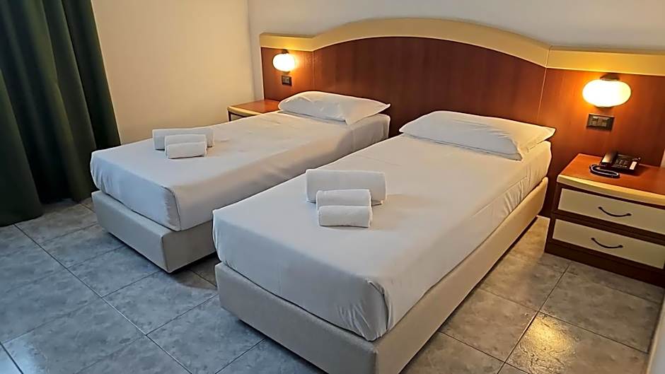 Air-conditioned double + bed room featuring a satellite TV, mini-bar and tiled floors. Wi-Fi is free. The Hotel has a Summer Swimming Pool (Entrance with extra charge)