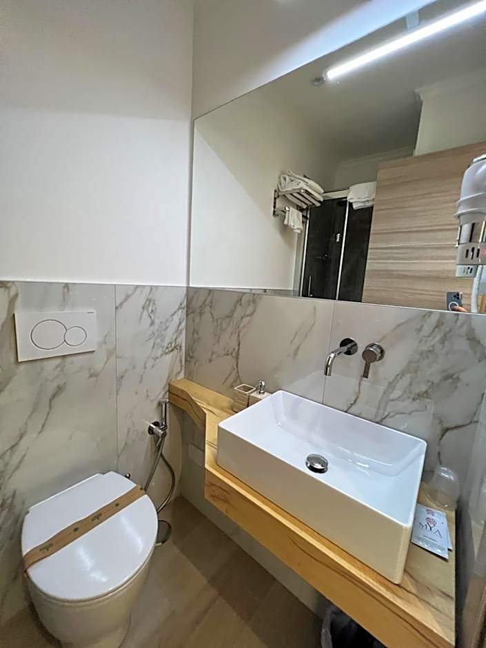 Guest amenities include free Wifi, air conditioning, a terrace, balcony, free toiletries, and non-smoking rooms. A 24-hour front desk and elevator provide easy access, with upper floors reachable by elevator. Room service is available, and streaming service (like Netflix) is offered. Private parking is available with extra charges, along with shuttle service (extra charges) and an airport shuttle.