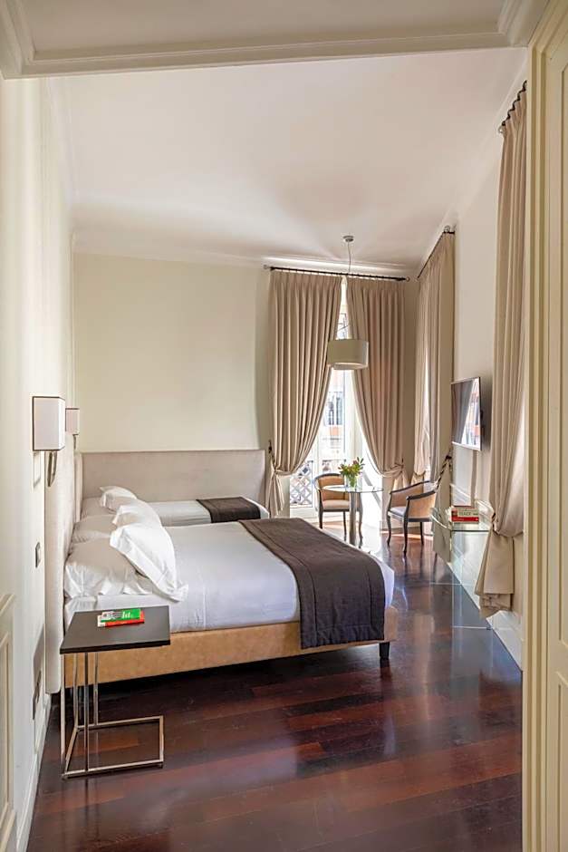 This air-conditioned suite consists of 2 communicating rooms and features views of Piazza Trinità dei Monti. Each room has a mini-bar with free water, free WiFi, a LED HDTV with Sky channels and a private bathroom with a hairdryer.