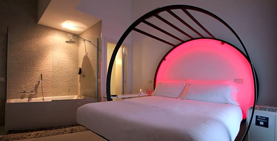 Known as the iCube room, it offers an iPad with free Wi-Fi, an LCD TV and free drinks and snacks from the mini-bar. The bed is located in a giant cube, illuminated by a programable led RGB with changing colors. The bathroom features a rain shower, and you can write messages or draw on the walls. This room cannot accommodate extra beds.