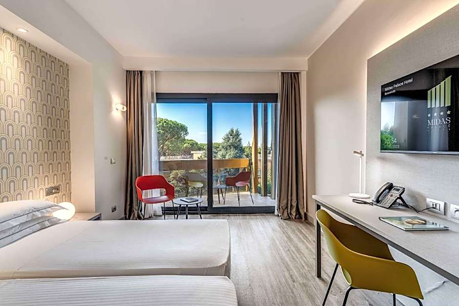 Hotel Midas Roma, a four-star escape in Italy, is part of the Barcelo Hotel Group. Nestled in Rome, it sits about from the city center, at 22 Via Raffaello Sardiello. A stylish base for explorations, this property blends modern comfort with a touch of Mediterranean charm.