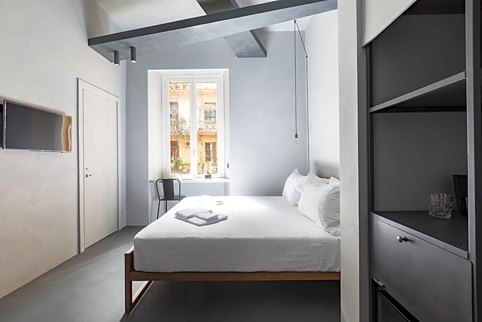 The B&B also offers the "1 Double Bed or 2 Beds" room option, perfect for couples or friends traveling together. Featuring cozy and hypoallergenic bedding, private bathrooms with complimentary toiletries, and extra-long beds, this room ensures a restful night's sleep. Whether guests choose to explore the historic landmarks nearby or simply relax in the comfort of their room, Pietra - The Italian Stay Collection caters to the needs of every traveler with its thoughtful amenities and welcoming ambiance.
