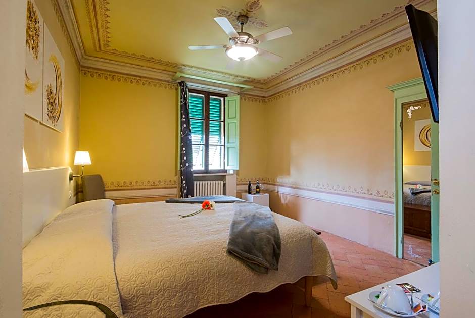 With fresco-painted walls, this triple room is set on the second floor and features a balcony with countryside view and a private bathroom.