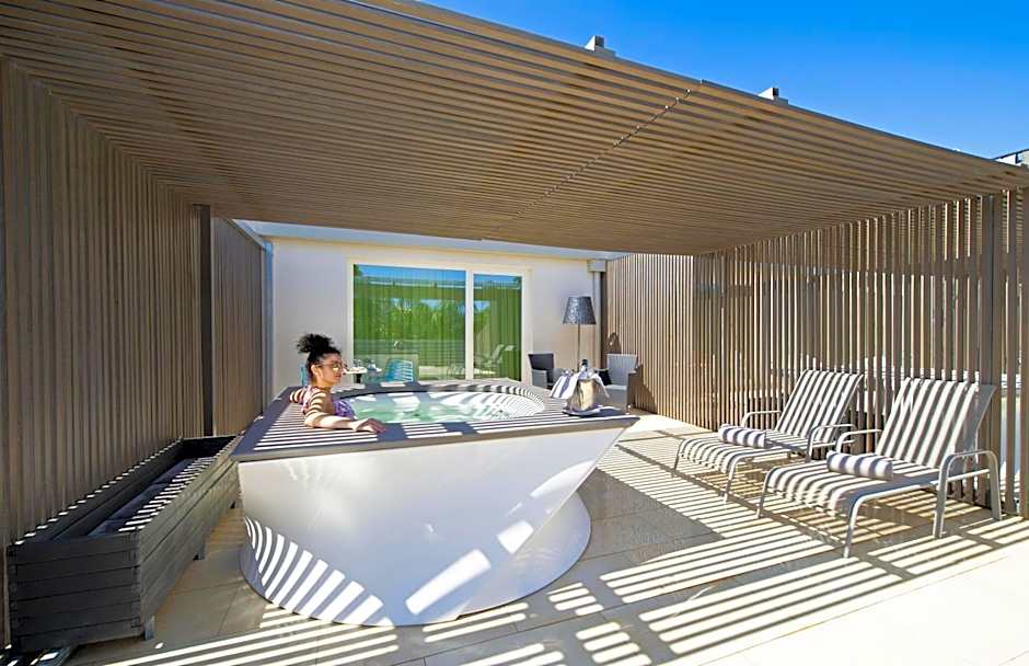 Featuring a furnished terrace with a hot tub, this air-conditioned suite has free WiFi, a satellite flat-screen TV, and a private bathroom and sunbed on the terrace