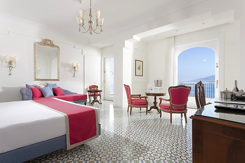 Room choices span sea-view, garden-view, and city-view options, all with soundproof interiors and balconies or terraces that reveal vistas from mountains to gardens and landmarks. The Junior Suite Luxury sleeps up to 5 adults and 3 children, while the Queen Room, Sea View accommodates up to 6 adults and 3 children; the Prestige, Sea View measures 237 sq ft. Other options include the Deluxe, Partial Sea View, Balcony and Vesuvio Suite, Sea View (and Vesuvio Suite, Sea View, Balcony) for varied seaside stays.