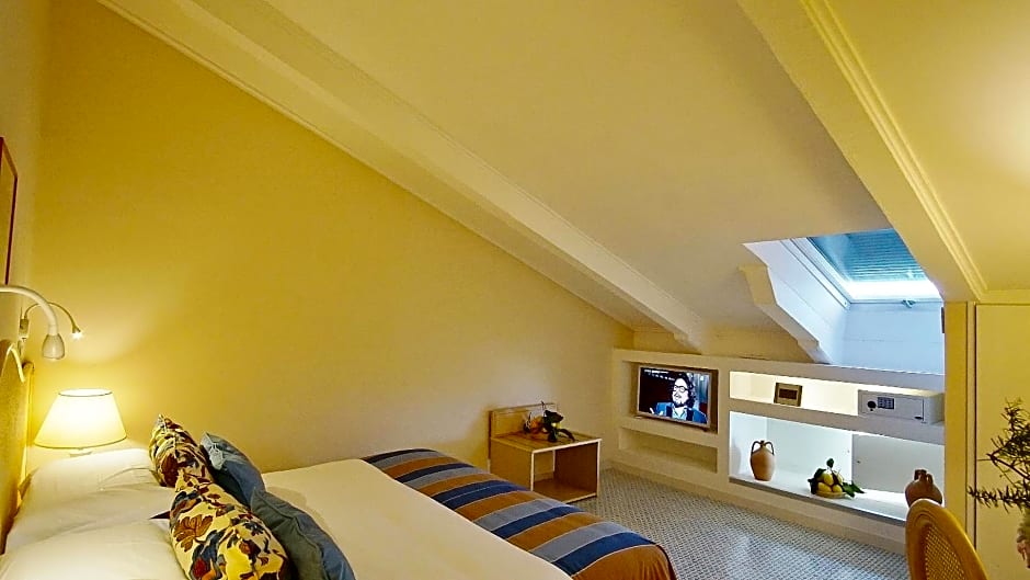 The Grand Hotel Aminta offers a variety of room types including Double or Twin Rooms with Garden View, Double Rooms in the Attic with no view, and Economy Double or Twin Rooms in the Annex with no view. All rooms accommodate 2 adults with no children, have a size ranging from 161 sqft to 205 sqft, and do not allow smoking. The beds in the rooms consist of twin beds or a combination of twin beds and a queen size bed.