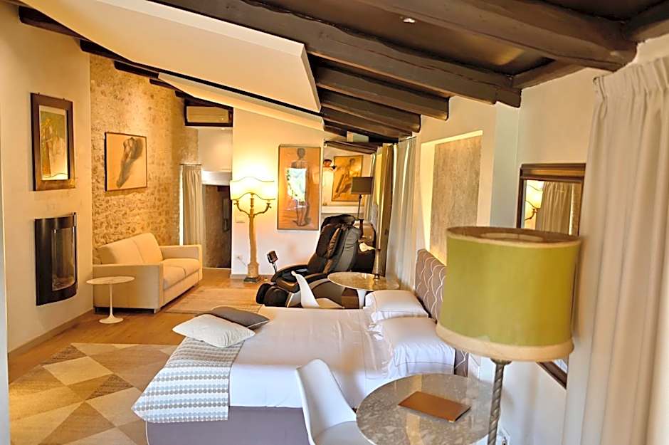 This suite features a bathroom with hydromassage and a panoramic private terrace with jacuzzi. It is suitable for 2-5 people.