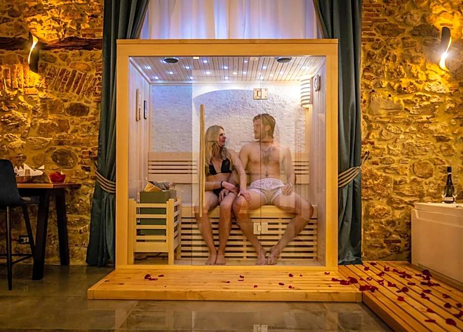 Featured amenities include free WiFi, spa tub, sauna, hot tub, air conditioning, private entrance, non-smoking rooms, bathtub, bidet, and free toiletries.