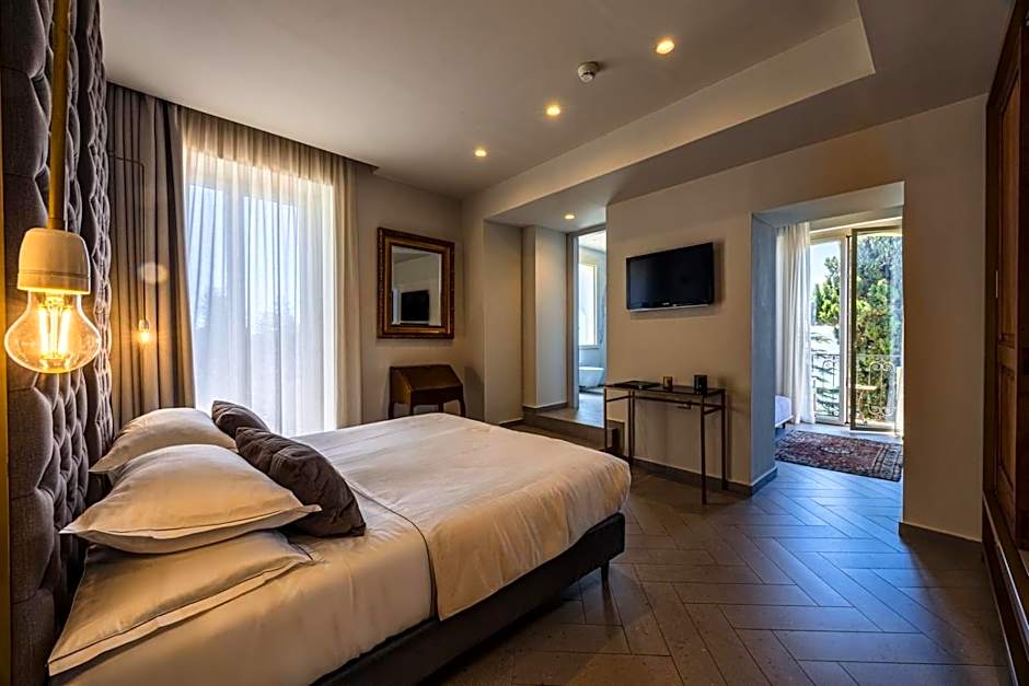 Room with attached bathroom with air conditioning, free Wi-Fi, and satellite TV. The balcony overlooks Taormina. It has parquet floors, characteristic Sicilian furniture, and a mini-bar. The bathroom has modern furnishings, a rain shower, and a toiletry set. It also has double-glazed windows.
