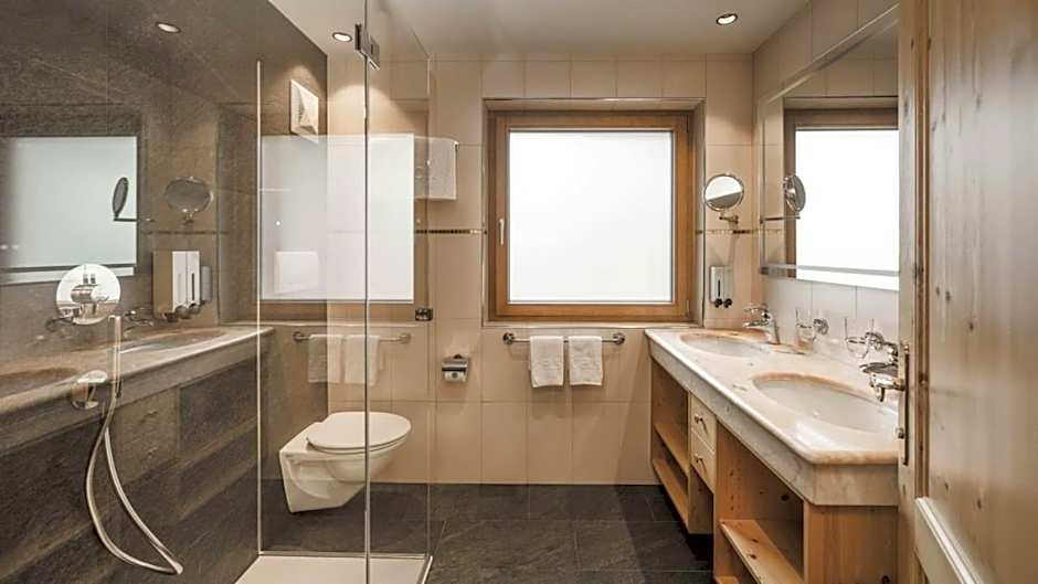 A quartet of pools offers year-round options: a rooftop outdoor infinity saltwater pool with views, an outdoor adults-only heated pool with views, an indoor adults-only heated pool with views, and an indoor heated pool with views. Wellness facilities include a spa with sauna and steam room (free) plus a Turkish/steam bath (free). Family-friendly perks shine here as well, with a free kids' club, a kids' pool, and free kids' meals enhancing the alpine family experience. Complimentary transport and parking add convenience for exploring the surrounding charm.