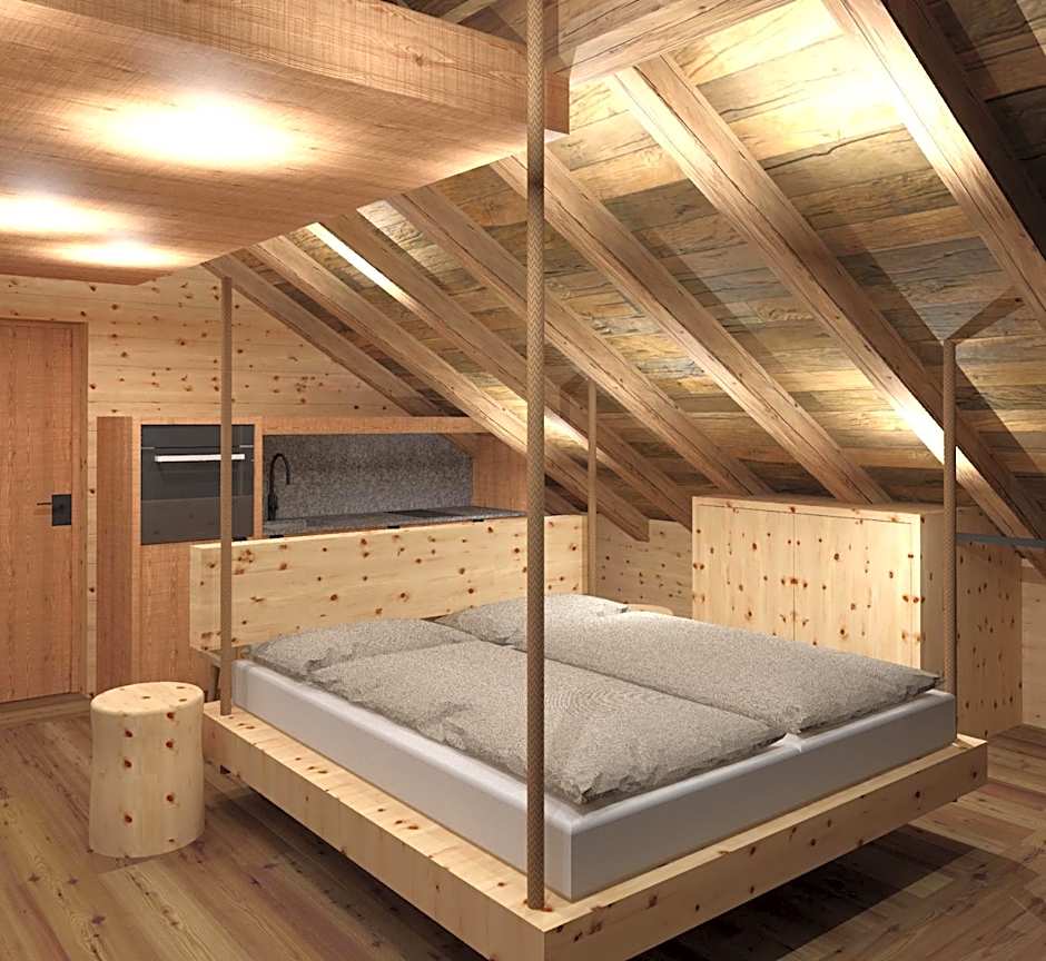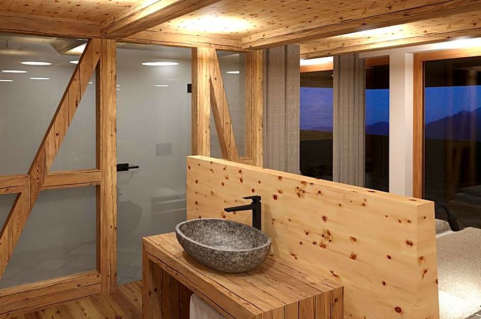 This spacious, allergy-free suite in Alpine style offers a balcony and is furnished with natural materials. It comes with solid wooden furniture.