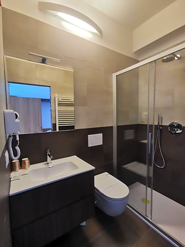 Air-conditioned room with satellite TV and a private bathroom with hairdryer.