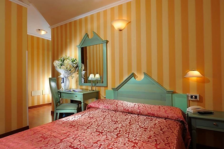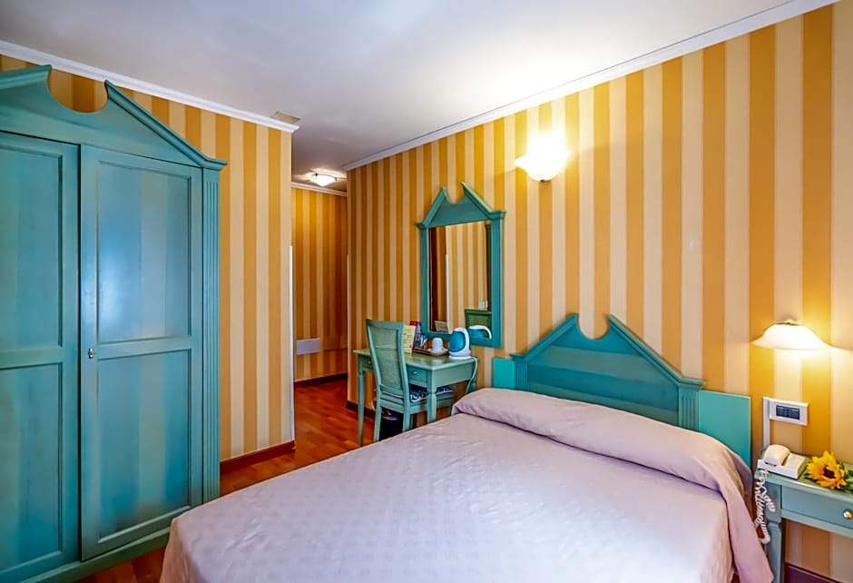 Room with attached bathroom with air conditioning and satellite TV. Most rooms overlook the main street, Strada Nuova.