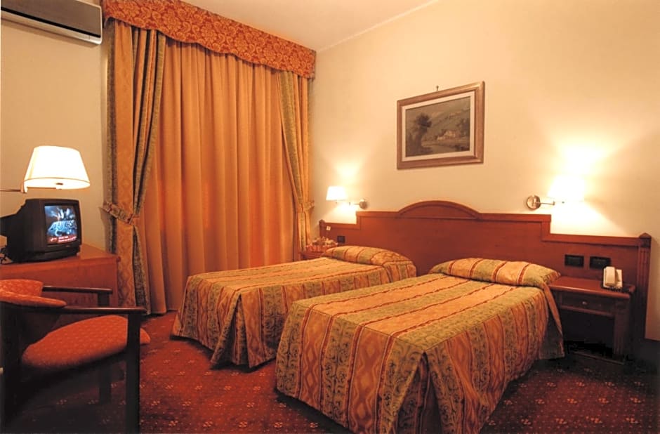 Air-conditioned room with free Wi-Fi, a satellite LCD TV with Mediaset Premium channels, and a private bathroom with hairdryer.