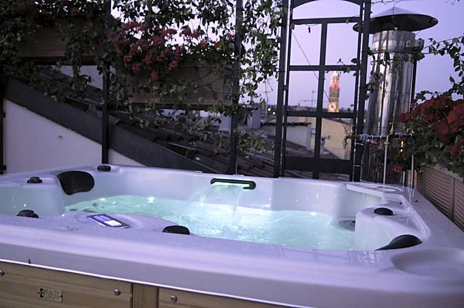 Elegant 2-room suite with a terrace with views of Verona's rooftops and a hot tub. Has superior furnishings, paneled walls, parquet floor, and a hairdryer in the private bathroom. Includes free Wi-Fi, a satellite LCD TV and a mini-bar.