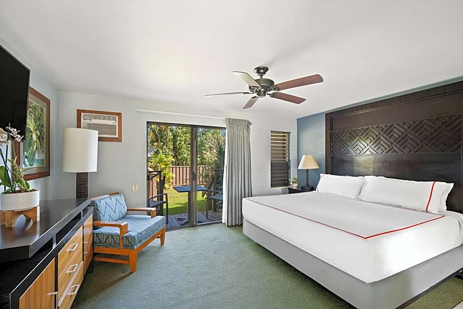 客室は、クイーンルームやガーデンビューのラナイルームから、キングルーム、デラックス、スイート、ファミリー向けの間取りまで幅広く用意されています。多くの客室は禁煙で、島の雰囲気に合う庭園や山の景色を楽しめる客室もあります。