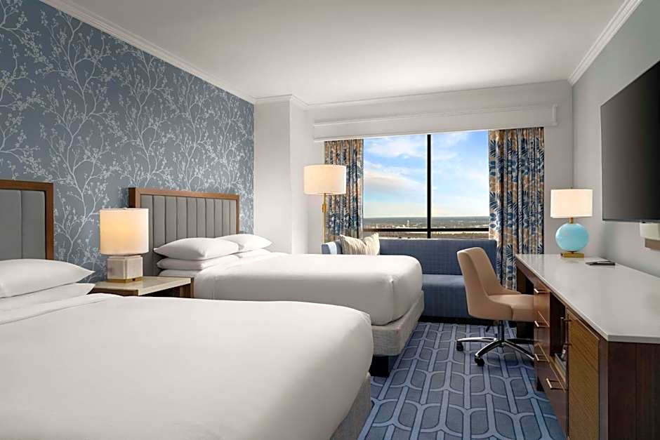 Hilton New Orleans Riverside はアメリカ合衆国ルイジアナ州ニューオーリンズにある4つ星のホテルで、市街中心部からわずか0.8マイルに位置します。住所:Two Poydras Street。朝食が提供され、料金は1泊あたり$60からです。
