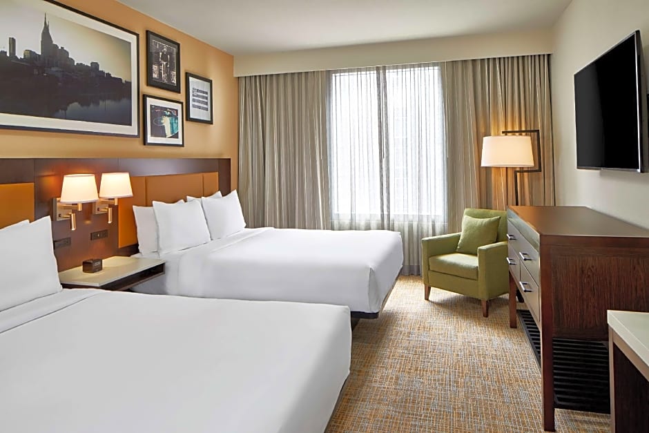 続いて、このホテルのゆとりあるラグジュアリーな客室についてご案内します。お一人でのご旅行、カップルでのご滞在、またはグループでのご利用いずれにも対応する客室タイプが揃っています。バスタブ付きの2ルーム・クイーン・スイートは大人6名とお子様4名まで快適にお休みいただけ、シティビューのキング・スタジオは大人4名とお子様3名に最適です。ナッシュビルの活気あふれる街を観光した後に、ゆっくりくつろげる理想的な空間をご提供します。すべてのお部屋は禁煙で、快適で清潔な環境が保たれています。