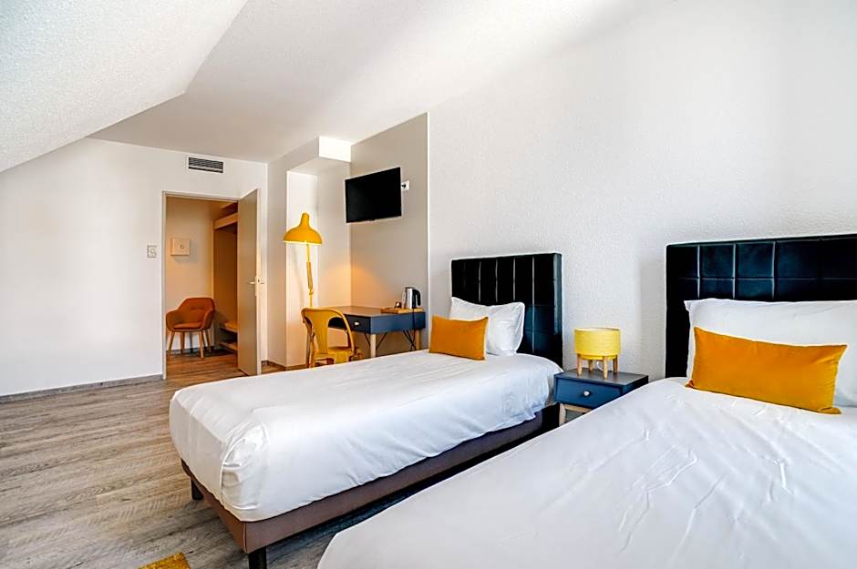 La Maison Hôtel Mulhouse Centreでは、快適でスタイリッシュな客室を各種ご用意しています。お一人でのご旅行でもご家族でのご滞在でも、ぴったりのお部屋が見つかります。広々としたスイートから居心地のよいダブルやツイン、長期滞在に最適なスタジオアパートメントまで、さまざまなニーズや好みに対応しています。どのお部屋をお選びいただいても、ミュルーズでの滞在中は静かで快適なひとときをお過ごしいただけます。