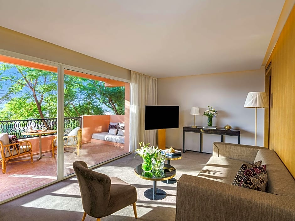 は追加料金がかかりますが、ペット同伴の方にとっては楽園です。無料Wi-Fiや専用駐車場に加えて、ホテルには子供用プール、子供向けビュッフェ、ファミリー向けのベビーシッターサービスも提供されています。美しい庭園を眺めながら、バー、子供向けの食事を提供するレストランを備えたこのホテルは、リラックスして思い出に残る滞在を提供します。探索を望む方には、ホテルがシャトルサービスを提供し、ゴルフコースに近いことも自慢です。マラケシュのこの贅沢なリトリートで、本当に贅沢な体験が待っています。
