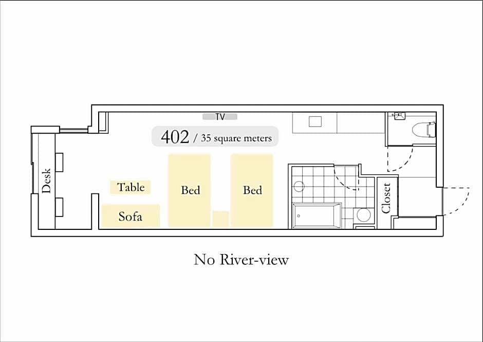 スーペリアルーム, ダブルベッドまたはシングルベッド2台, リバービュー
