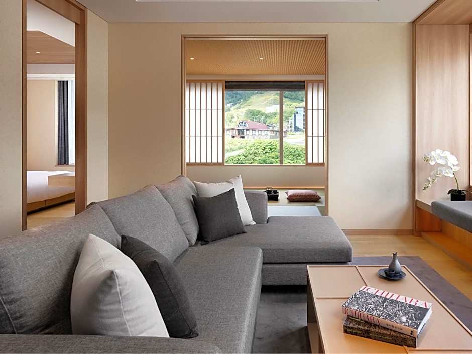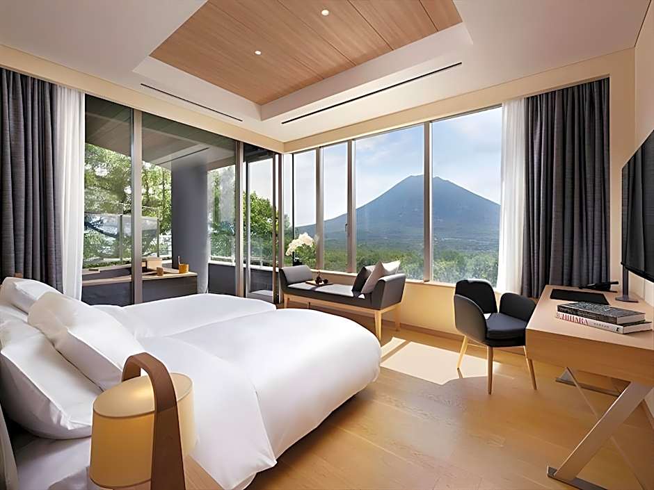 客室は多様な構成があり、ビレッジビューや中庭ビューのスタジオ(441平方フィートなど)やコーナースイート、複数の寝室を備えたスイートなどが用意されています。例としては、ビレッジビューの2ベッドルームスイート、マウンテンビューの3ベッドルームスイート、アンヌプリスイートの各種、さらには4ベッドルームのペントハウスなどの大型ペントハウスがあります。禁煙の客室も用意されており、複数の客室は羊蹄山(Yotei)や周辺の山々、中庭の眺めを備えていて、グループの規模や好みに合わせて選べます。