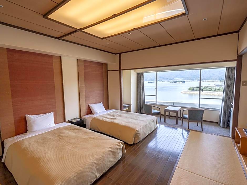 独自の文化体験を求める方には、(ホテル名)は和室を提供しており、伝統的で本格的な雰囲気の中で滞在をお楽しみいただけます。日本のデザインの美しさと簡素さを感じつつ、現代的な快適さや利便性も享受できます。畳の床や引き戸などを備えたこれらの客室は、静かで落ち着いた環境を提供し、ゲストが日本の豊かな文化に浸ることができる場所です。小豆島へのご訪問の際には、忘れられない体験のために和室のご予約をご検討ください。