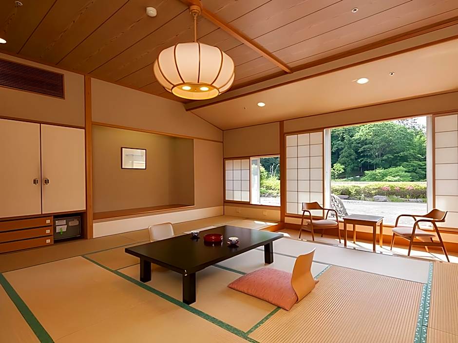 館内には、無料の専用駐車場、無料Wi-Fi、エアコン、禁煙ルームなどの快適な設備が整っています。24時間対応のフロントやエレベーターなどの利便性の高い設備により、チェックインや館内移動がスムーズになります。また、無料の温泉浴場や山の景色を望む庭園があり、ゆったりとくつろげる場所を提供します。