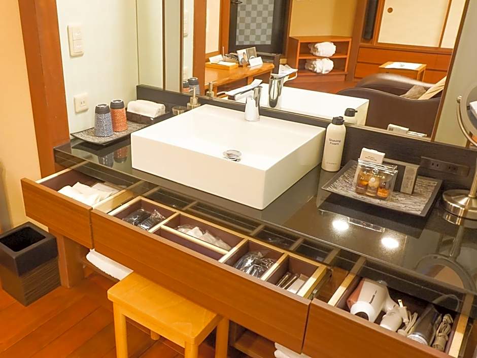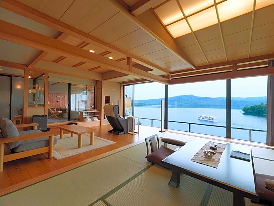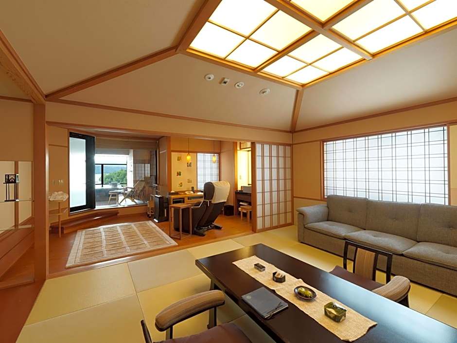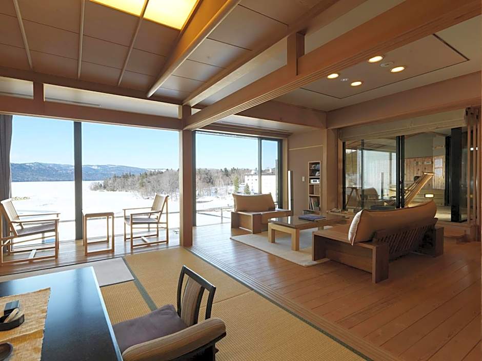 Featuring a lake view and a spacious private open-air bath, this large suite comes with traditional futon bedding on a tatami (woven-straw) floor. It has a balcony, CD player and DVD player. Includes a Japanese breakfast and a traditional kaiseki multi-course dinner.