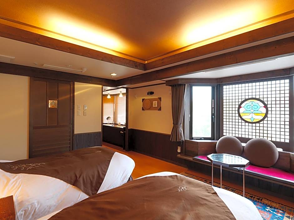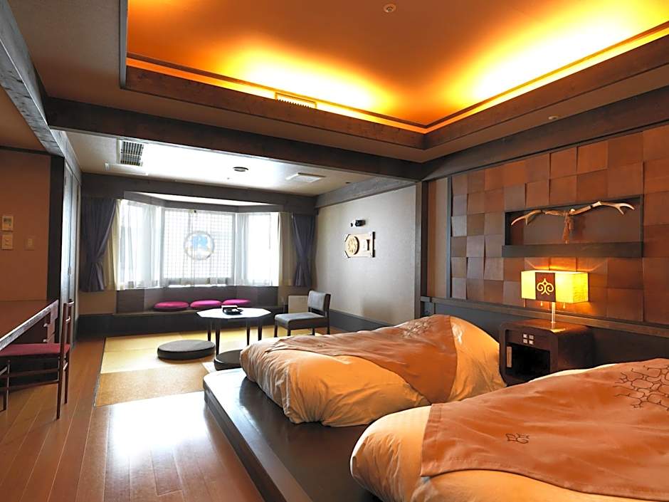Features Western-style beds and a tatami (woven-straw) seating area. Room features traditional Ainu decors and warm interiors. Includes breakfast buffet and dinner buffet.