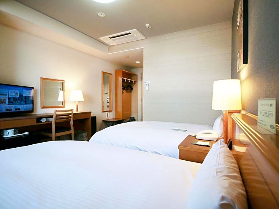 The Hotel Route-Inn Akita Tsuchizaki offers a variety of room options. These include Standard Single Rooms (both smoking and non-smoking) which can accommodate 1 adult and 1 child, Semi Double Rooms available for smoking, suitable for 2 adults, and Standard Twin Rooms perfect for 2 adults, all including twin beds. The room sizes range from 151 sqft to 215 sqft.