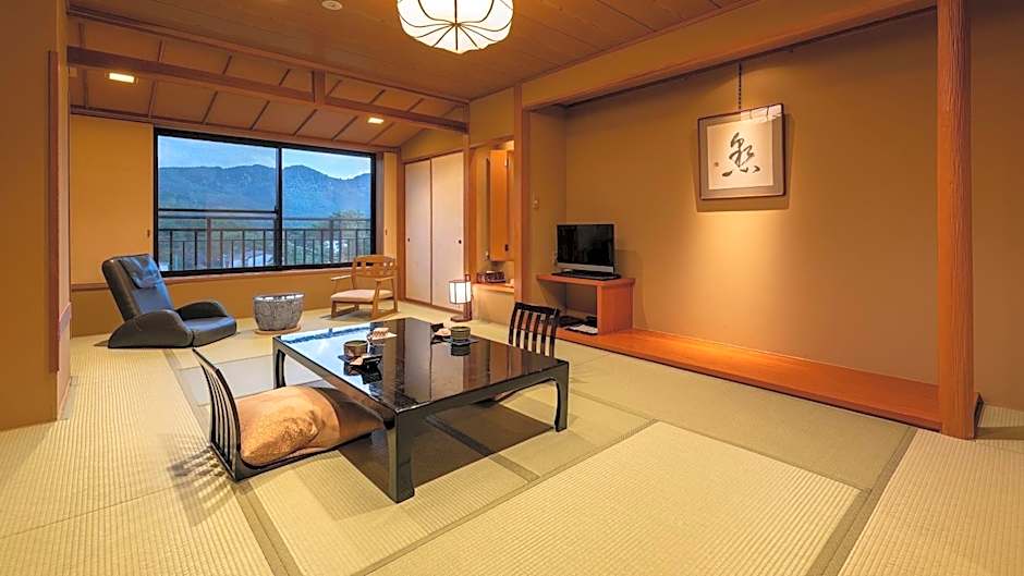 Offering free toiletries, this quadruple room includes a private bathroom with a bath, a shower and a bidet. The air-conditioned quadruple room offers a flat-screen TV with satellite channels, tatami, a tea and coffee maker, a dining area as well as mountain views. The unit has 2 beds and 2 futons.