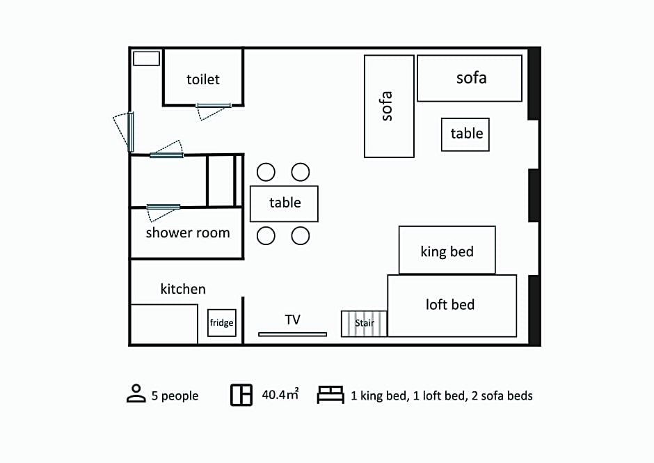 The spacious studio offers air conditioning, tatami, as well as a private bathroom featuring a shower and a bidet. Meals can be prepared in the well-fitted kitchen, which comes with a stovetop, a refrigerator, kitchenware and an oven. Among the room amenities are a safe deposit box, an electric kettle and a sofa as well as city views. The unit offers 3 beds and 1 futon.