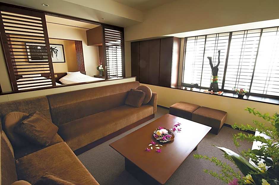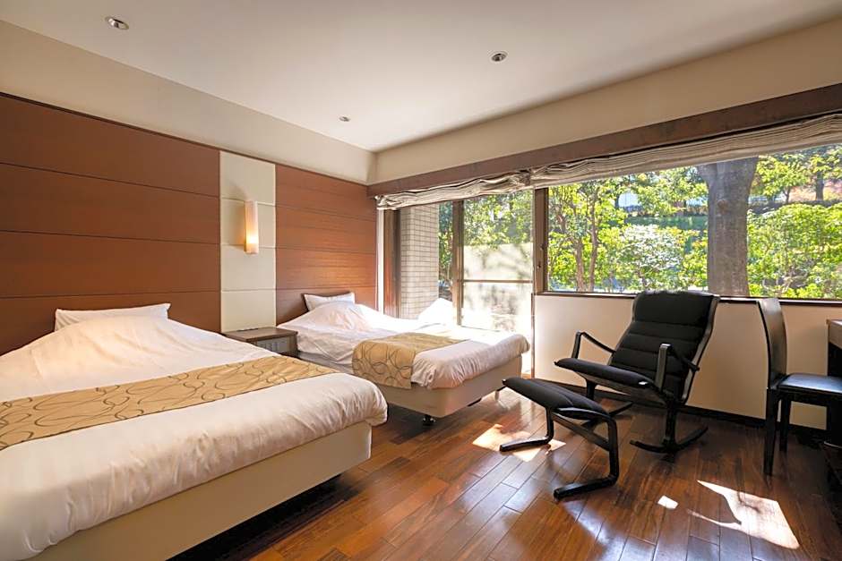 This family room's special feature is the private open-air bath. The family room includes a private bathroom, well-fitted with a bath, a shower, a hairdryer and slippers. The spacious air-conditioned family room offers a flat-screen TV with satellite channels, tatami, a seating area, an electric kettle as well as mountain views. The unit has 2 beds.
