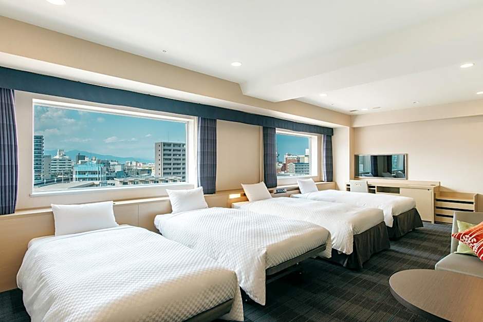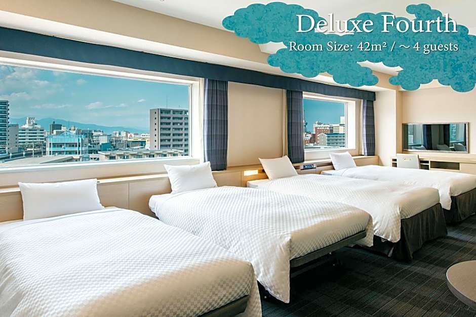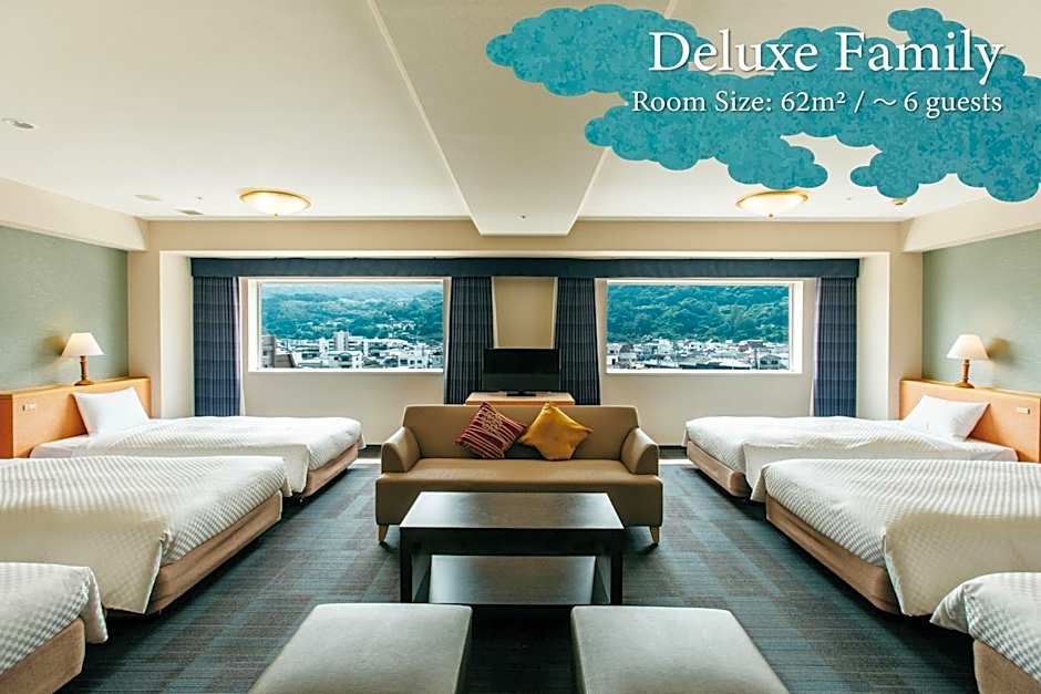 The spacious quadruple room features air conditioning, a safe deposit box, as well as a private bathroom boasting a bath and a shower. The quadruple room provides an electric kettle, a carpeted floor, yukata, heating and a flat-screen TV with satellite channels. The unit has 4 beds.