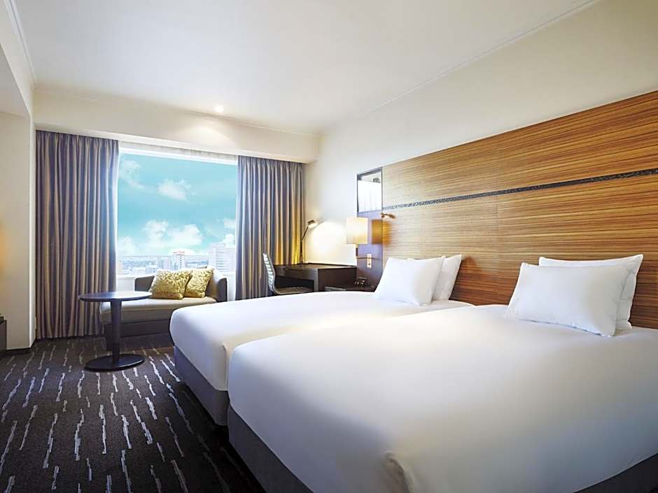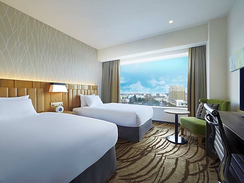 The ANA Crowne Plaza Chitose offers a variety of room types. The rooms range from Standard Twin Rooms to Deluxe Double or Twin Rooms, Executive Twin Rooms, Standard Single Rooms, Standard Double or Twin Rooms (No choice of bed/smoking preference), Deluxe Twin Rooms, and Premier Twin Rooms. The occupancy of the rooms ranges from accommodating 1 adult to 3 adults and 2 children. Smoking is not allowed in any of the rooms. Bed sizes include twin beds, queen size beds, and a combination of twin and queen size beds. Room sizes range from 215 sqft to 355 sqft.