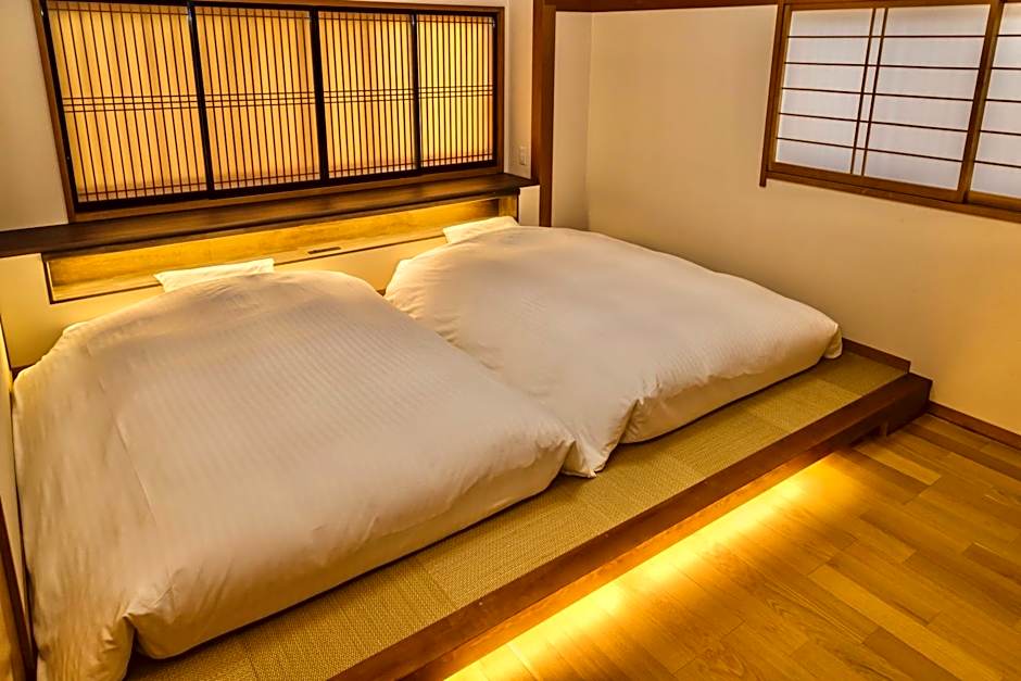 Guests will have a special experience as the quadruple room features a hot tub. The spacious quadruple room provides air conditioning, tatami, a balcony with garden views as well as a shared bathroom featuring a bath. The unit offers 2 beds and 2 futons.