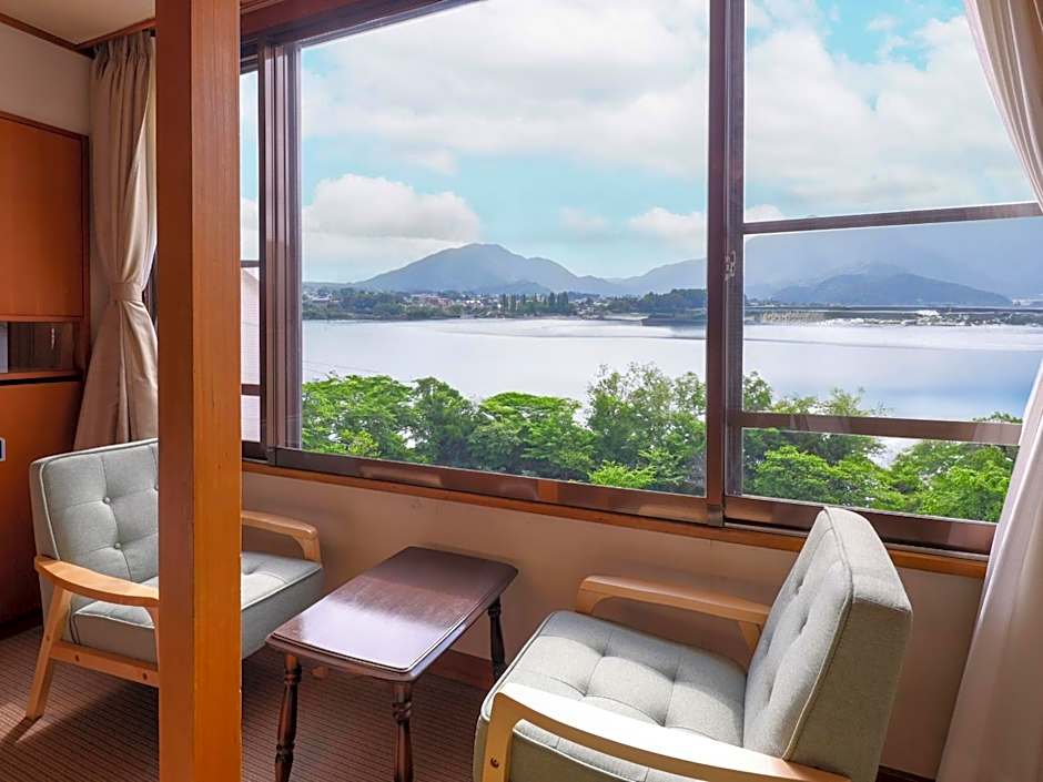 Offering free toiletries, this twin room includes a private bathroom with a shower, a hairdryer and slippers. The twin room offers a flat-screen TV, tatami, a tea and coffee maker, heating as well as lake views. The unit has 2 futons.