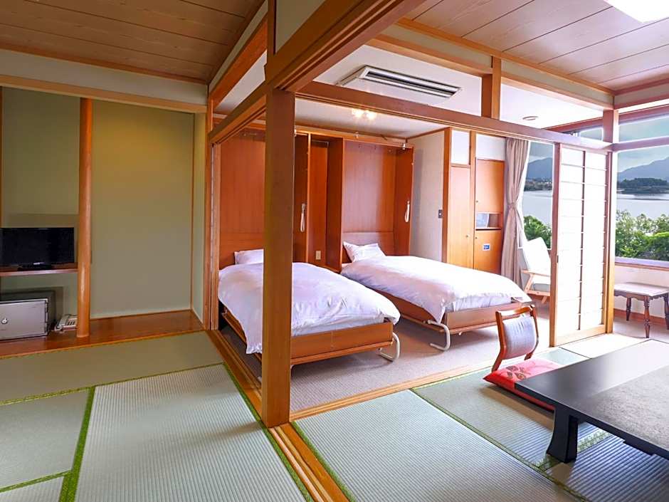 Providing free toiletries, this twin room includes a private bathroom with a bath, a shower and a hairdryer. The twin room provides tatami, a tea and coffee maker, heating, a flat-screen TV, as well as lake views. The unit offers 2 beds.