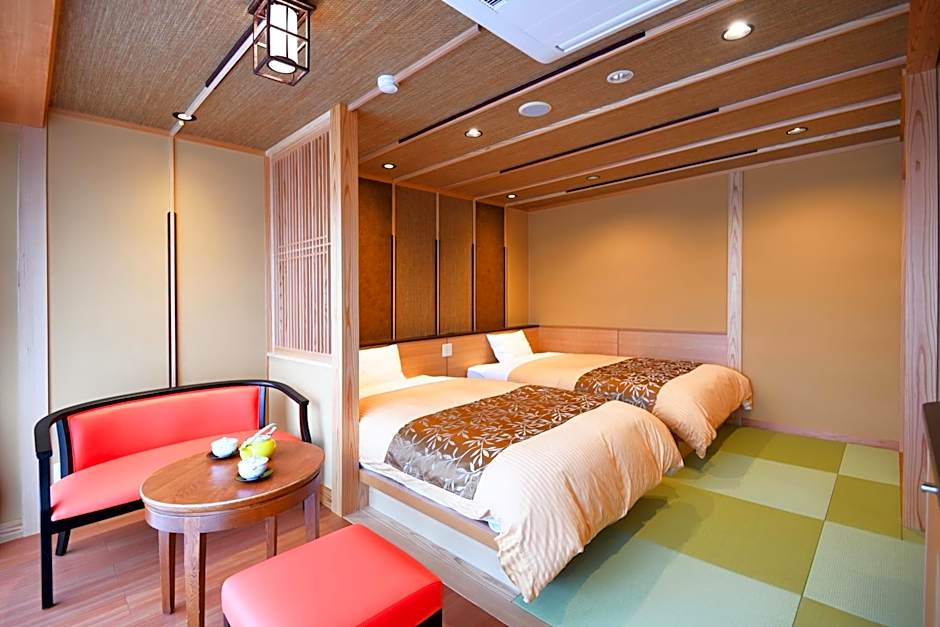 The twin room provides air conditioning, tatami, as well as a private bathroom featuring a shower and a bidet. The unit offers 2 beds.