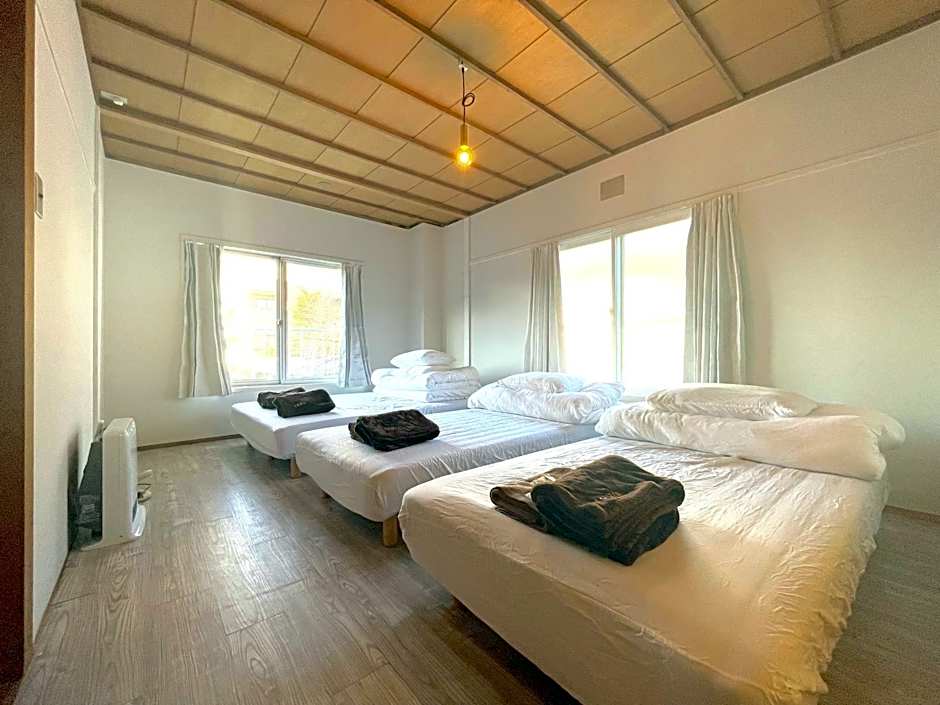 The quadruple room features air conditioning, tatami, as well as a shared bathroom boasting a shower and a bidet. The unit has 1 bed and 2 futons.