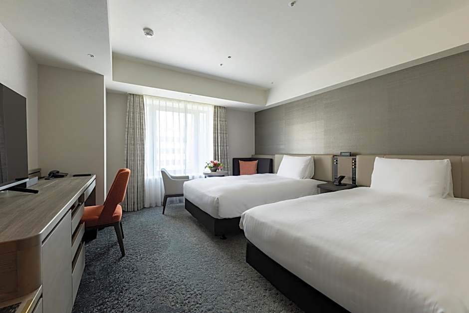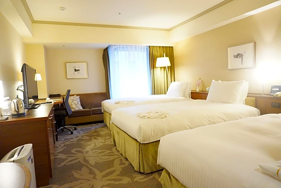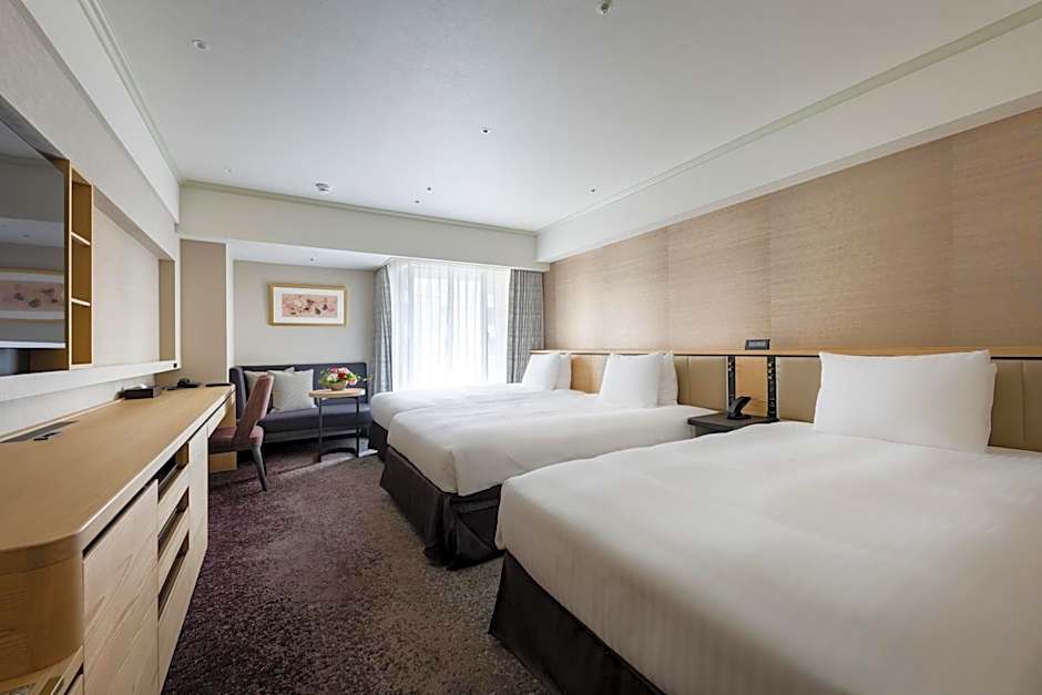 Hotel Nikko Fukuoka offers a variety of non-smoking rooms including Luxury Triple, Superior Twin, Luxury Twin, Luxury Single, Luxury Double, and Superior Double rooms. Accommodations range from single to triple occupancy with bed options from twin to queen size. Room sizes vary from 237 to 377 sqft, catering to different guest needs.