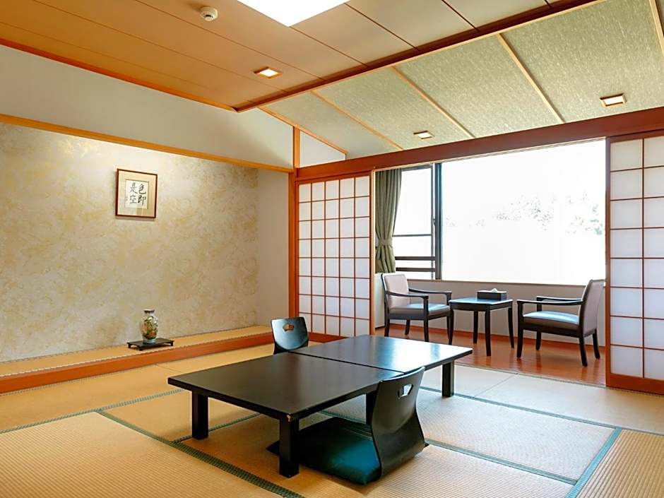 The twin room includes a private bathroom, well-fitted with a bath, a shower, a bidet, a hairdryer and slippers. The spacious air-conditioned twin room offers a flat-screen TV with satellite channels, tatami, a tea and coffee maker, a safe deposit box as well as mountain views. The unit offers 2 beds and 3 futons.