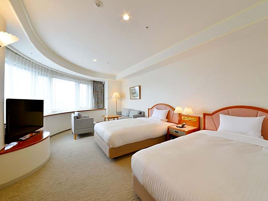The Hakodate Kokusai Hotel offers a variety of room types including Twin, Triple, and Double rooms. Some rooms are designated for smoking, while others are non-smoking. The rooms range in size from 183 sqft to 398 sqft. The occupancy of the rooms varies, with accommodations available for single occupancy as well as groups ranging from 2 adults and 1 child to 4 adults and 2 children. The bed options include Twin beds, Queen size beds, and Double beds, with some rooms also featuring Sofa beds and Futon Mats.