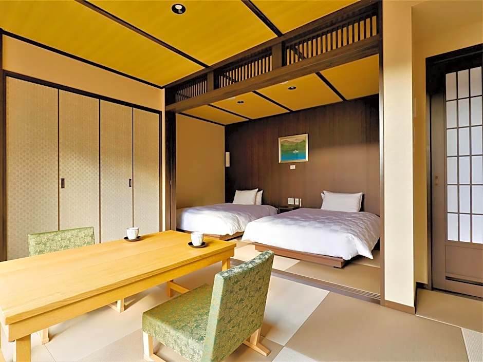 This twin room's standout feature is the private open-air bath. The spacious twin room offers air conditioning, tatami, as well as a private bathroom boasting a bath and a shower. This twin room has a tea and coffee maker, a safe deposit box and a flat-screen TV. The unit has 2 beds.