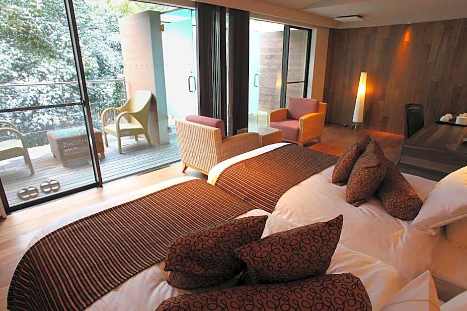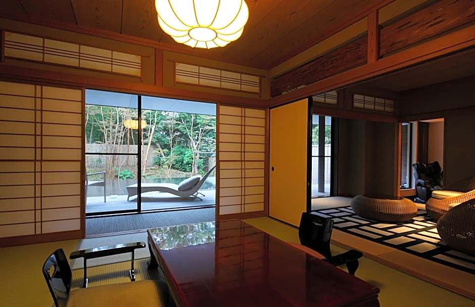 This suite's special feature is the private open-air bath. The spacious suite features 2 bedrooms and 2 bathrooms with a bath and free toiletries. The air-conditioned suite provides a flat-screen TV, soundproof walls, a mini-bar, a tea and coffee maker as well as a quiet street view. The unit offers 2 beds and 2 futons.