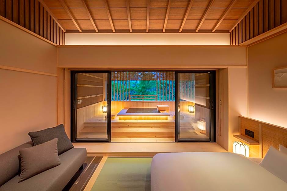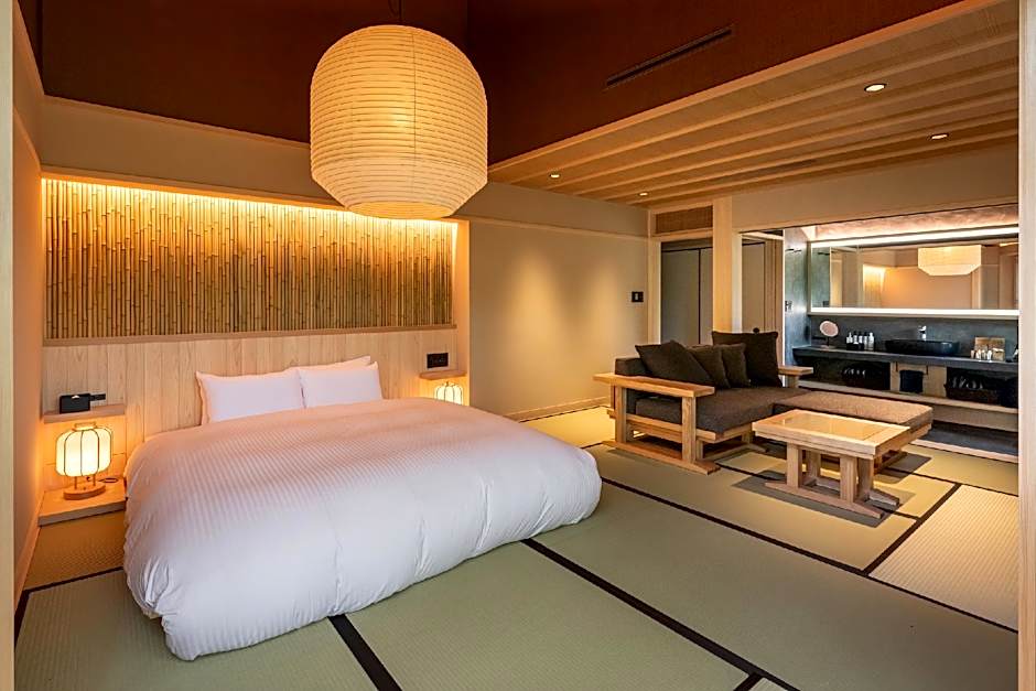 Guests will have a special experience as the double room features a private open-air bath. The spacious double room offers air conditioning, tatami, as well as a private bathroom boasting a bath and a shower. The unit has 1 bed.