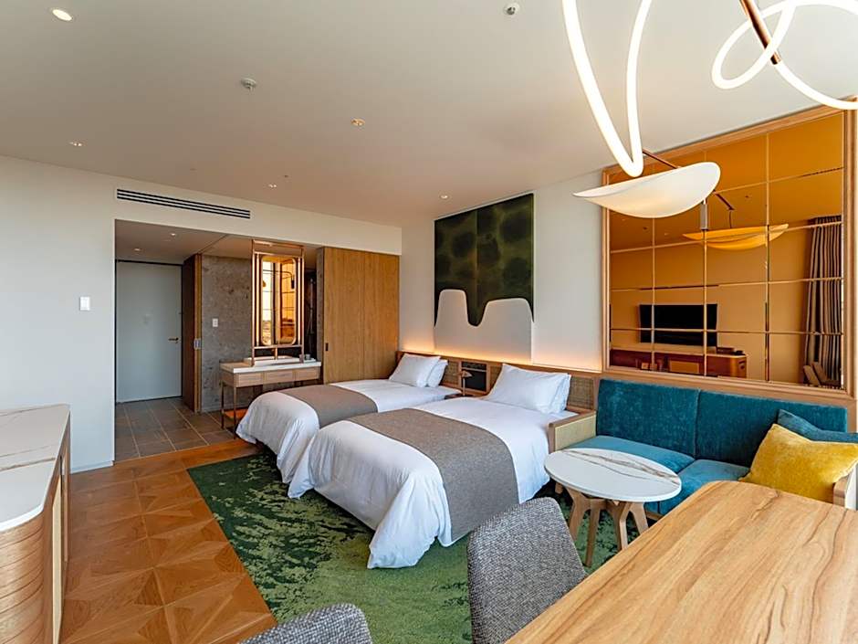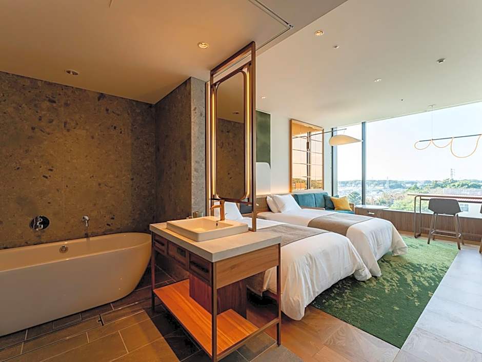 The private open-air bath is the standout feature of this twin room. The spacious twin room features air conditioning, a tea and coffee maker, as well as a private bathroom boasting a bath and a shower. Featuring a terrace, this twin room also provides a wardrobe, a safe deposit box and a TV. The unit has 2 beds.