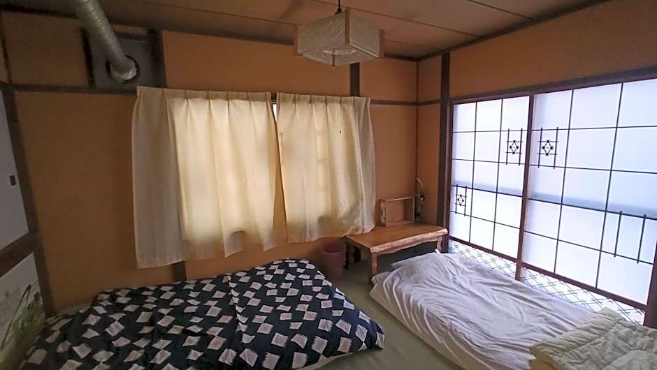 The double room provides tatami and a wardrobe, as well as a shared bathroom featuring a shower. The double room offers heating and garden views. The unit offers 1 bed and 1 futon.
