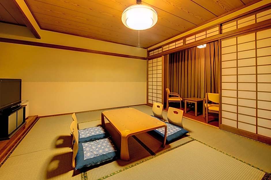 The air-conditioned quadruple room offers a flat-screen TV, tatami, a wardrobe, a safe deposit box as well as sea views. The unit offers 4 futons.